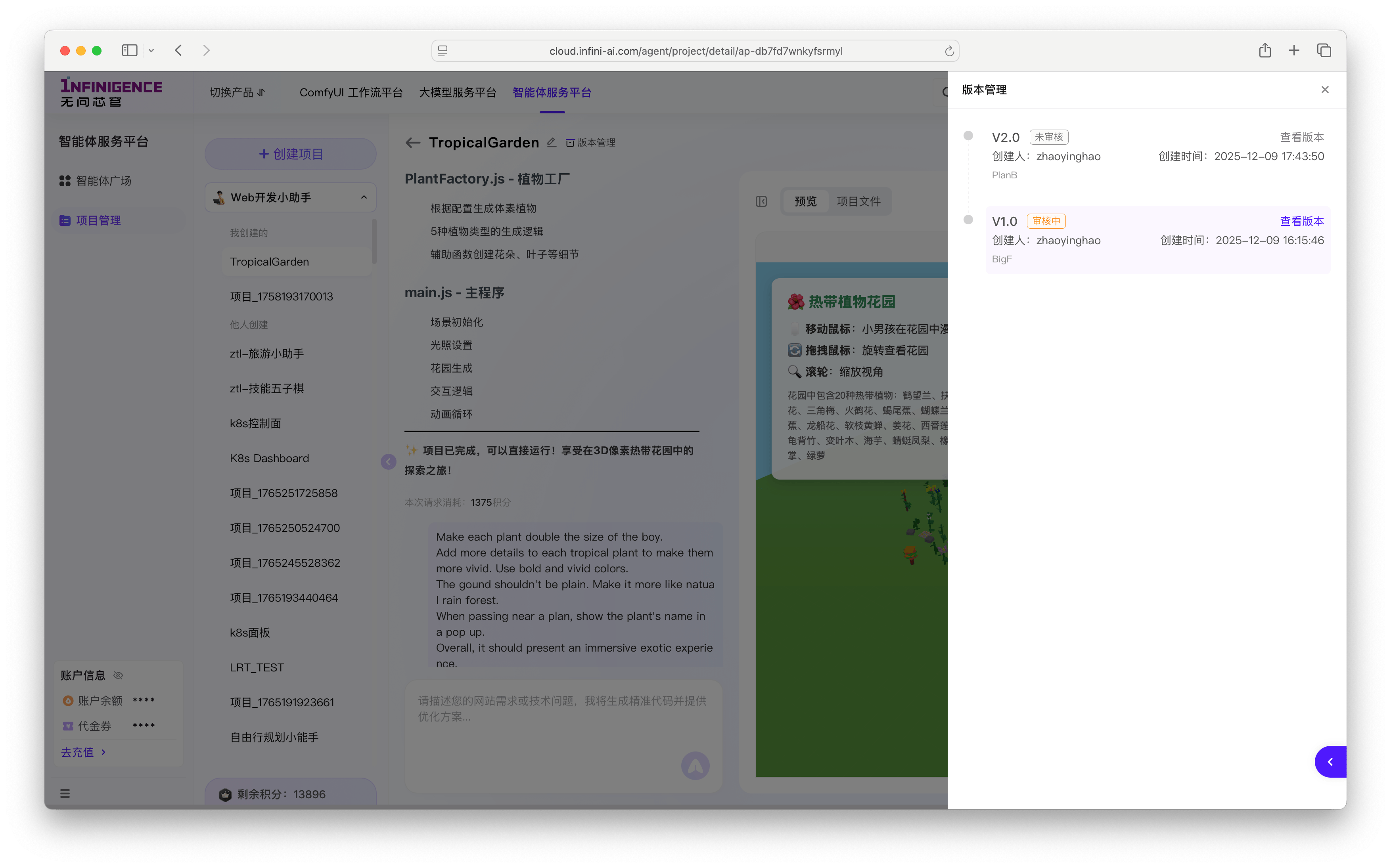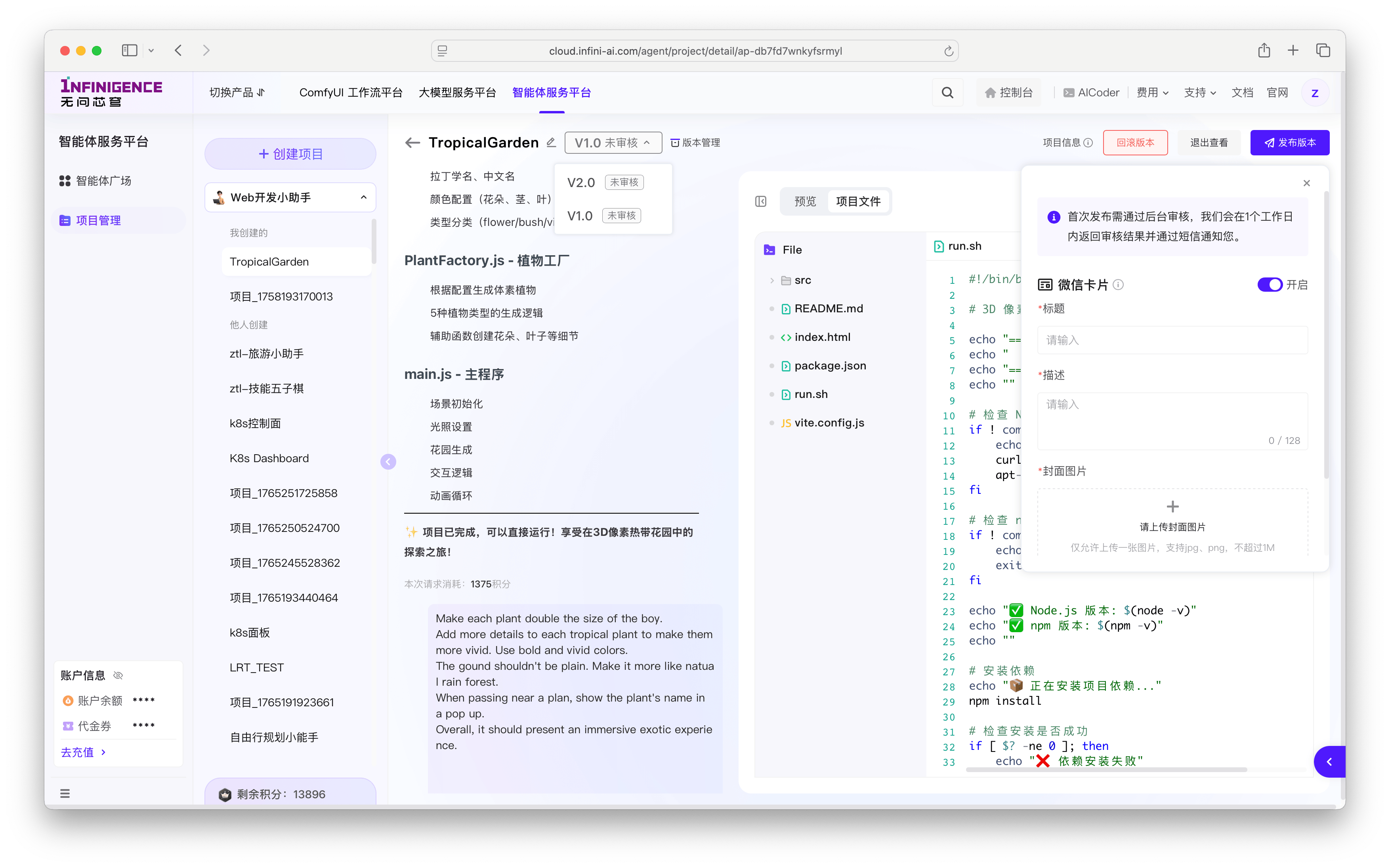 智能体服务平台提供了强大的版本控制与发布分享功能,帮助您管理开发迭代,并将优秀的智能体产物分享给更多用户。